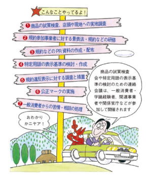 | 消費者庁・公正取引委員会の認定を受けて設立された公正競争規約は、業界の自主規制機関によって運用されます。各業界では公正競争規約を運用するための団体を組織しています。 これが公正取引協議会です(既存の業界団体が運用していることもあります。)。これらの運営団体では、各業種に応じた調査や検査を行ったり、公正マークを発行するなど公正競争規約の遵守、普及のための活動を行っています。 全国には不動産や食料品、家庭用品、自動車など全国組織の協議会が78(令和4年4月現在)設立されています。このうち77が当連合会に加入しております。 |